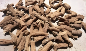 Dried Pilodre roots used in traditional Ayurvedic herbal preparations.