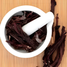 Dried alkanet roots used in Ayurvedic medicines, cosmetics, and natural coloring.