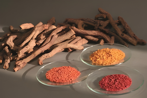 Naturally dried madder roots used in traditional medicine and herbal dye production.